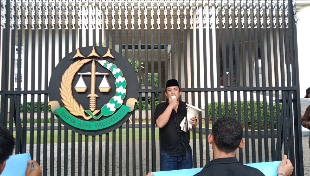 Jakarta, trustsulteng – Forum Perjuangan Masyarakat Mori Utara (FPMMU) bersama Lembaga Bantuan Hukum Lentera Keadilan menyampaikan aspirasi di Kejaksaan Agung (Kejagung). Pendemo mendesak Kejagung agar penyidik Kejati Sulteng segera menetapkan tersangka pelaku kasus dugaan korupsi PT RAS di Kabupaten Morowali Utara (Morut).