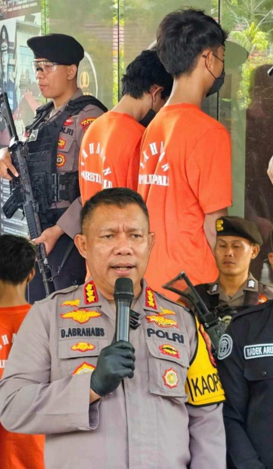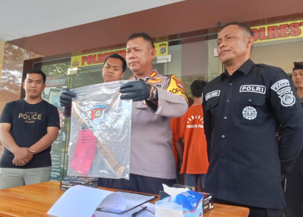 Kapolresta Palu Kombes Pol. Deny Abrahams, S.H., S.I.K., M.H., didampingi Kasat Reskrim Polresta Palu AKP Made Yoga Mahendra, S.I.K., Ps. Kasubsi PIDM Polresta Palu Aiptu I Kadek Aruna, menjelaskan kronologi kejadian dan penangkapan, .melalui konfrensi pers.